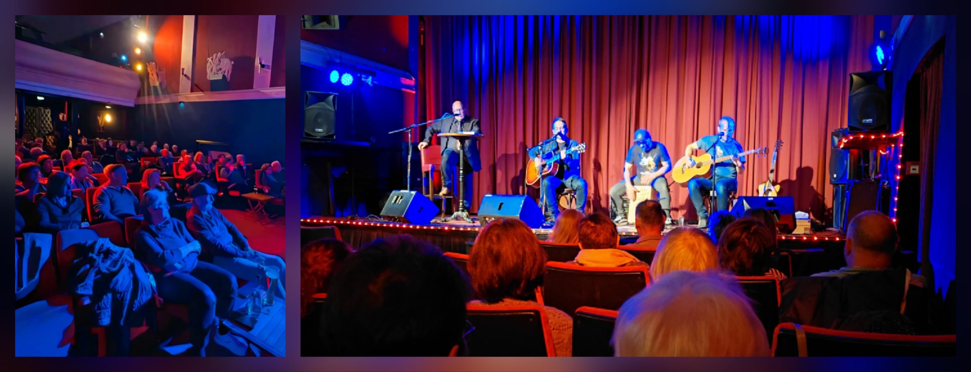 RiedRockRead zum Ersten: Nachdem wir mit Krimiautor Michael Boenke schon viele Jahre in gegenseitiger Wertschätzung verbunden waren und er uns in mehreren Büchern verewigt hatte, wurde es höchste Zeit, gemeinsam auf die Bühne zu gehen. Das Projekt RiedRockRead war geboren und nahm im Laufe der Monate konkrete Form an. Eine Mischung aus Lesung und Unplugged-Konzert sollte es werden, garniert mit kurzweiligen Anekdoten. Anfänglich war lediglich ein gemeinsamer Abend geplant – Autor und Band fanden allerdings einen so guten Draht zueinander, dass wir kurzerhand eine kleine Tour auf die Beine stellten. Erste Station war das Lichtspielhaus in Riedlingen, wo unser Drummer Sédon mit Jürgen Matzner, dem Herrn dieses wunderschönen Hauses, einen Donnerstagabend klar machte.