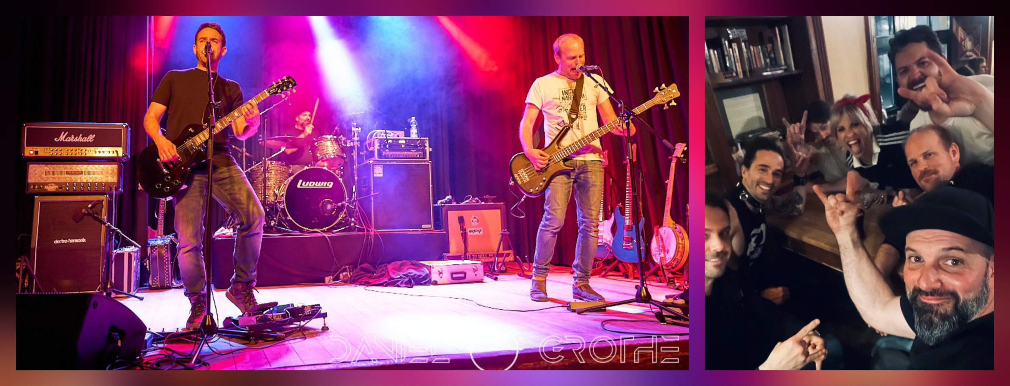 In bester Laune trafen wir uns zur Bandprobe und fuhren in der „Black Mamba“ nach Ravensburg. Nach RiedRockRead im Unplugged-Gewand hatten wir dieses Mal wieder „das volle Besteck“ dabei. Mit unseren amerikanischen Freuden von The Infamous HER hatten wir zuletzt vor gut dreieinhalb Jahren gespielt. Kennen tun wir uns bereits seit mehr als einer Dekade. Entsprechend herzlich war die Begrüßung, als wir in die Zehntscheuer einliefen und Monique und ihre Jungs wiedersahen.